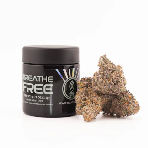 Grape Popsicles Indica-Dominant Hybrid Flower (3.5g) by Breathe Free: Potent Grape, Sweet Candy, and Calming Effects.