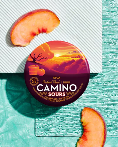 Orchard Peach Camino Sours Gummies (20pk) by Camino: 1:1 THC:CBD for Gentle Balance and Tranquility